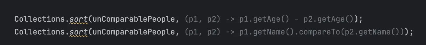 Collections.sort(unComparablePeople, Comparator.comparingInt(p -> p.getAge()));