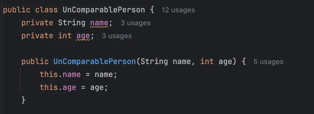 Comparable을 구현한 Person과 Comparable을 구현하지 않은 Person을 만들었습니다.