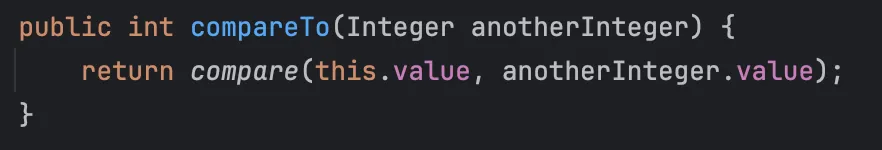 다음으로 Integer와 같은 primitive type의 wrapper 클래스들은 compare라는 함수를 제공합니다.
